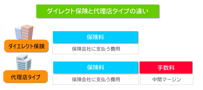 自動車保険の料金は同じ条件(年齢・車種・等級・補償内容)でも保険会社によって違ってきます。代理店に仲介して貰う自動車保険の場合は手数料を取られることになるので、手数料分ユーザーの保険料が高くなるのです。